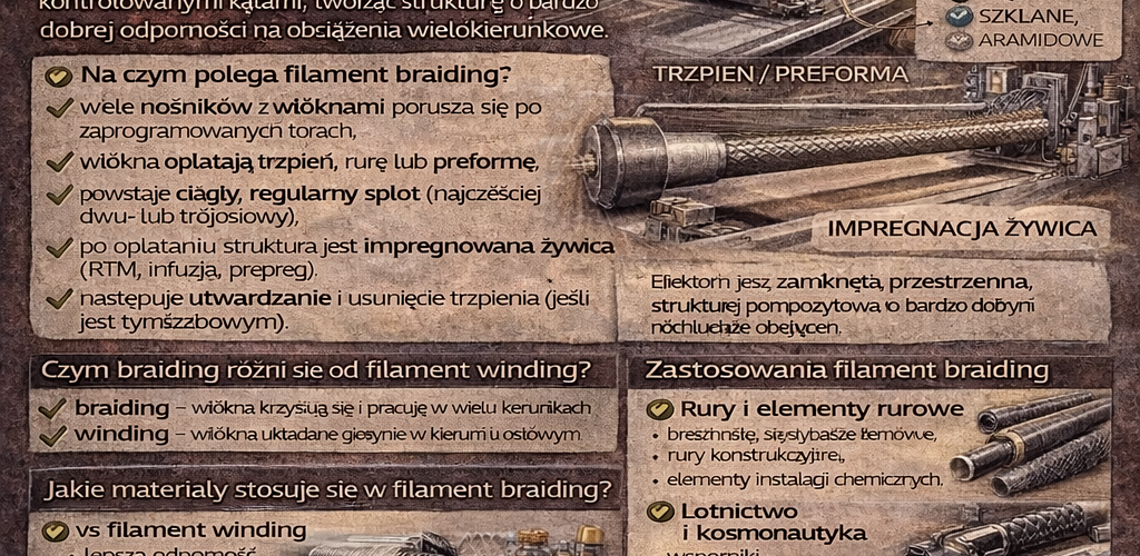 ➡️ W kolejnych artykułach na kompozyty.net pokażemy porównanie filament braiding, filament winding i RTM na przykładach przemysłowych oraz realne kryteria wyboru technologii.