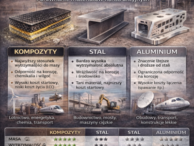 Wybór materiału konstrukcyjnego to jedna z najważniejszych decyzji inżynierskich, wpływająca na masę, trwałość, koszt i sposób eksploatacji produktu. Najczęściej rozważane są...