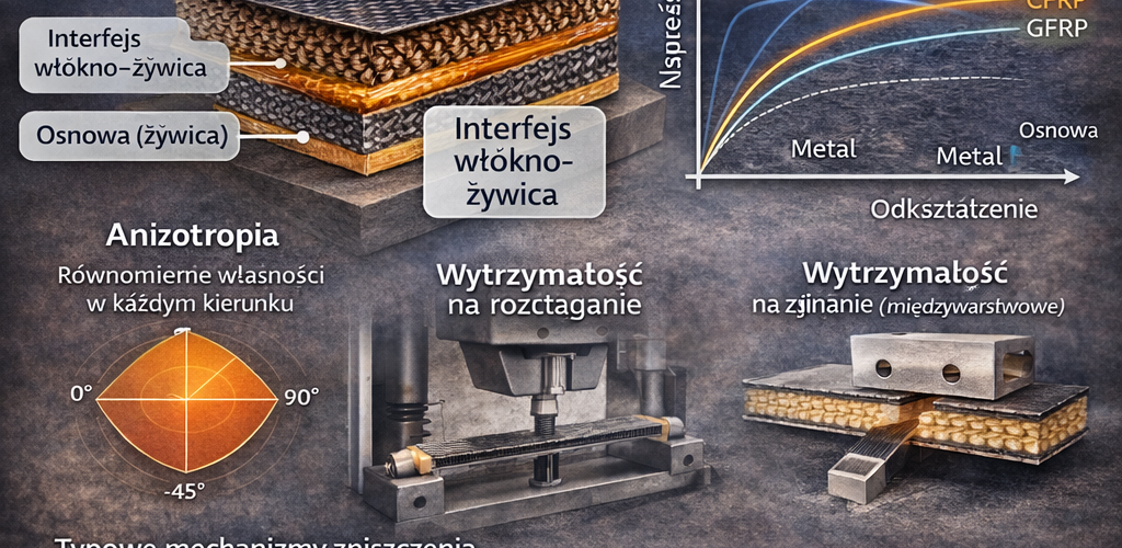 Kompozyty różnią się od metali tym, że ich właściwości można projektować (dobierając włókno, żywicę i układ warstw), ale jednocześnie są one kierunkowe (anizotropowe). To największa przewaga i największe „ryzyko” jednocześnie.