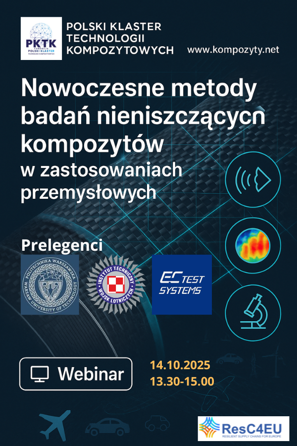 Webinar: Nowoczesne metody badań nieniszczących kompozytów w zastosowaniach przemysłowychPolski Klaster Technologii Kompozytowych wraz z partnerami w ramach Akademii Kompozytów zaprasza…