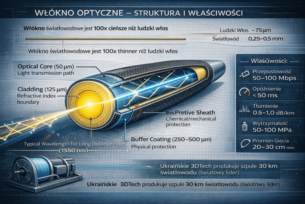• Imponujący zasięg: Choć początkowo ograniczone do 10 km, najnowsze osiągnięcia z maja 2025 roku pozwoliły na stworzenie 30-kilometrowej kotuszki światłowodowej, co zwiększa zasięg operacyjny o 50%.