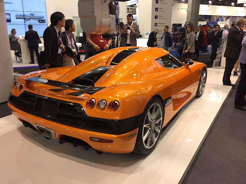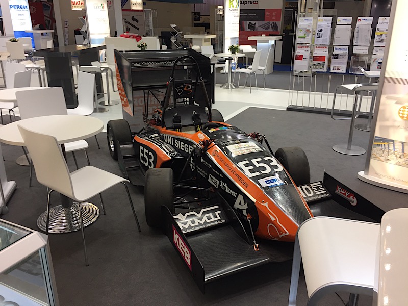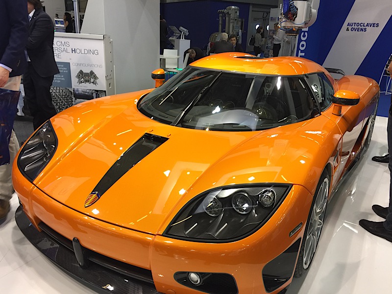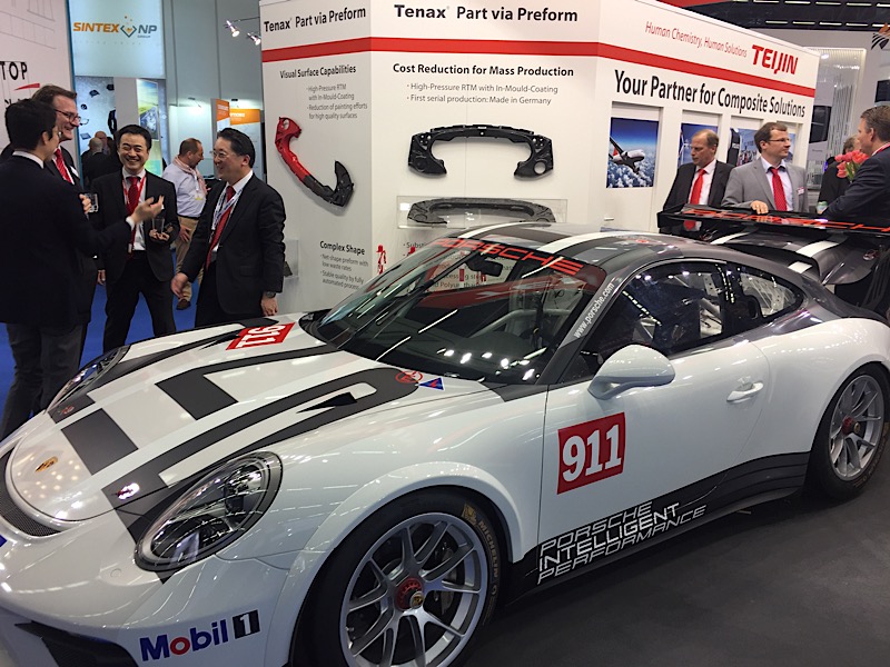Jak co roku na targach kompozytowych można było zobaczyć wiele konstrukcji samochodów kompozytowych wykonanych z materiałów kompozytowych – głównie wzmocnionych włóknem węglowym. Dominowały samochody sportowe wyższej klasy nie tylko ze względu na swój wygląd, ale dlatego, że w tej klasie pojazdów obniżenie masy odgrywa znaczącą rolę. Można było zobaczyć takie samochody jak DB11, Maseratti czy bolidy formuły 1. Większość tych „piękności” zostało przedstawionych na zdjęciach poniżej w postaci relacji fotograficznej. Rozwiązania kompozytowe dominujące w tych konstrukcjach to przede wszystkim nadwozia, ale można było również zobaczyć płyty podłogowe. Ciekawy jest podział stosowanych materiałów w samochodach kompozytowych. Na elementy widoczne bądź nośne wykorzystywane są elementy bazujące na żywicach epoksydowych, natomiast na elementy mniej odpowiedzialne i niewidoczne coraz chętniej stosowane są termoplasty, najczęściej w postaci termoplastycznych płyt organicznych. Najbardziej jednak we wszystkich konstrukcjach przeznaczonych dla przemysłu motoryzacyjnego widoczne jest wykorzystanie nowoczesnych technologii wytwórczych pozwalających na zwiększenie wydajności wraz ze skróceniem cyklu produkcyjnego takich jak High Pressure Resin Transfer Moulding (HP-RTM), czy prasowania, które wydaje się powoli stawać alternatywą dla tej drogiej technologii jaką jest HP-RTM.